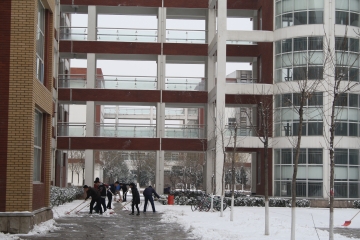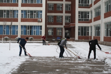 2月21日夜,我市突降大雪,给师生员工出行造成不便。化学化工学院立即启动特殊天气应急预案,安排师生按照责任区域展开清雪工作。参与清雪的教职工及学生不怕苦、不怕累、顶风冒雪、共同协作,完成了责任区内的清雪工作。22日清晨,德赢官网师生提前取来清雪工具,有序地来到各自的劳动区域,开始清雪工作。面对厚厚的冰面,老师和同学们充分发扬了吃苦耐劳、顽强拼搏的精神,大家团结协作,干劲十足,分工明确,极大的提高了工作效率。在德赢官网师生共同努力下,德赢官网8教、9教、10教周边道路及楼间广场厚厚的积雪基本清理干净,确保了校园道路的畅通无阻,为师生安全出行提供了保障。