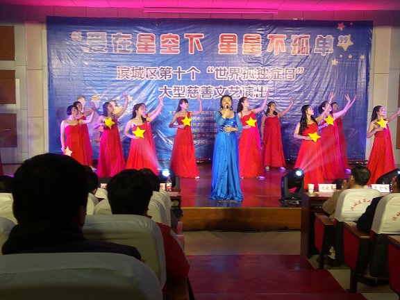 演出伊始,屏幕上播放的短片介绍了自闭症儿童的现状及金钥匙儿童康复中心的概况,使更多的人了解了自闭症儿童与金钥匙儿童康复中心。德赢官网志愿者团队的歌伴舞《星星的孩子》,以优美的旋律,轻柔的舞姿向观众们表达了不歧视、不嘲讽“星星的孩子”的愿望以及对自闭症儿童能够像正常孩子一样生活的美好祝福。