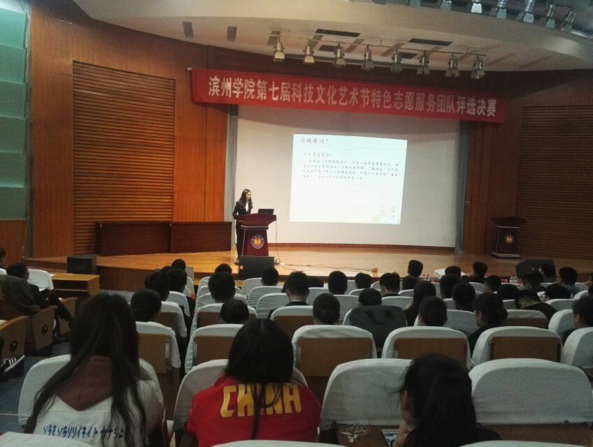 4月24日,德赢官网参加了由滨州学院举办的第七届科技艺术文化节特色志愿服务团队评选决赛。由14级柏广明同学代表学院团队上台答辩。
