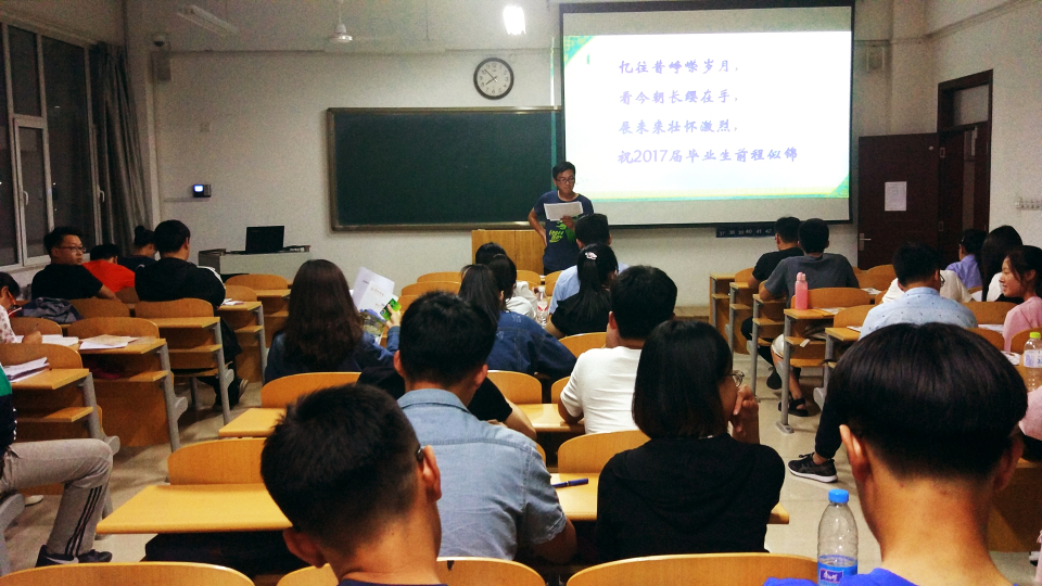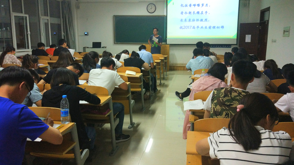2017年6月5日晚7点30分,德赢官网于8教411室组织召开了由辅导员金志杰主持的毕业生文明离校会议,2014级全体专科毕业生到场并参加了此次会议。