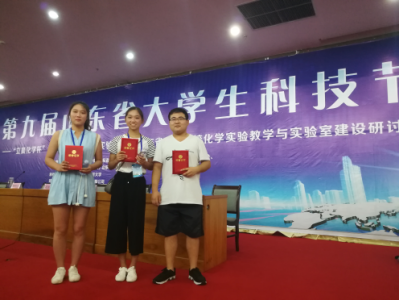 2017年7月24日-27日,由德赢官网谢彦、姚海波二位老师指导3名2014级同学参加了在临沂大学举行的“立晨化学杯”第九届山东省大学生化学实验大赛暨山东省高等院校化学实验教学与实验室建设研讨会。我校学子在该项赛事中与省内众多名校学生同场竞争,表现出色,实现了自参加该项赛事以来的一获奖突破。崔咏梅同学获得一等奖、胡子超同学获得二等奖、董玉萧同学获得三等奖。