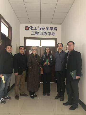 随后,贝弗利·马多克斯·莫恩博士一行6人在化工与安全学院杨仲年院长的陪同下到化工与安全学院工程训练中心进行了实地参观与交流。杨院长详细介绍了德赢官网实训中心的建设情况及学生实习实训安排。贝弗利·马多克斯·莫恩博士对德赢官网实训中心的建设表示赞赏和肯定,并对联合举办本科项目前景表示乐观。