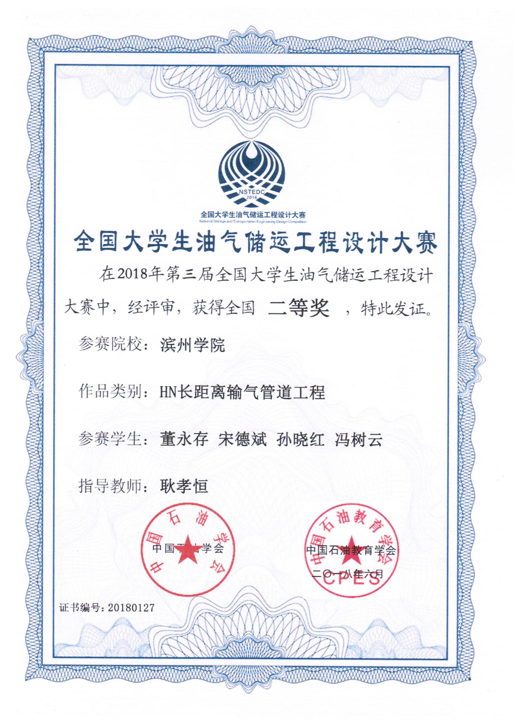 全国大学生油气储运工程设计大赛是由中国石油学会、中国石油教育学会主办,中国石油大学(华东)承办的面向全国大学生的油气储运学科专业性大赛。此次大赛共有60支队伍进入决赛,德赢官网共有三支队伍进入决赛。决赛于6月22日-24日在中国石油大学(华东)进行,经过了抽签,答辩,提问,评审等多个环节,德赢官网喜获“全国大学生油气储运工程设计大赛二等奖”三项的好成绩。(详见网址:/index.html
