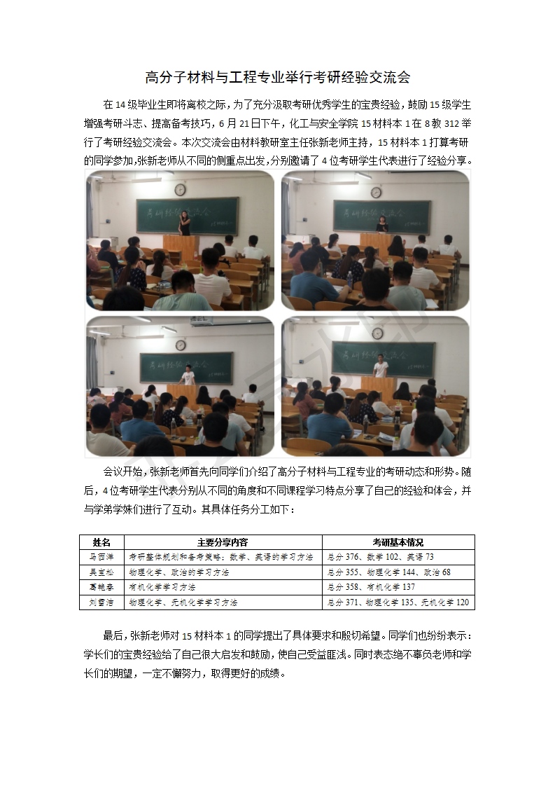 高分子材料与工程专业举行考研经验交流会