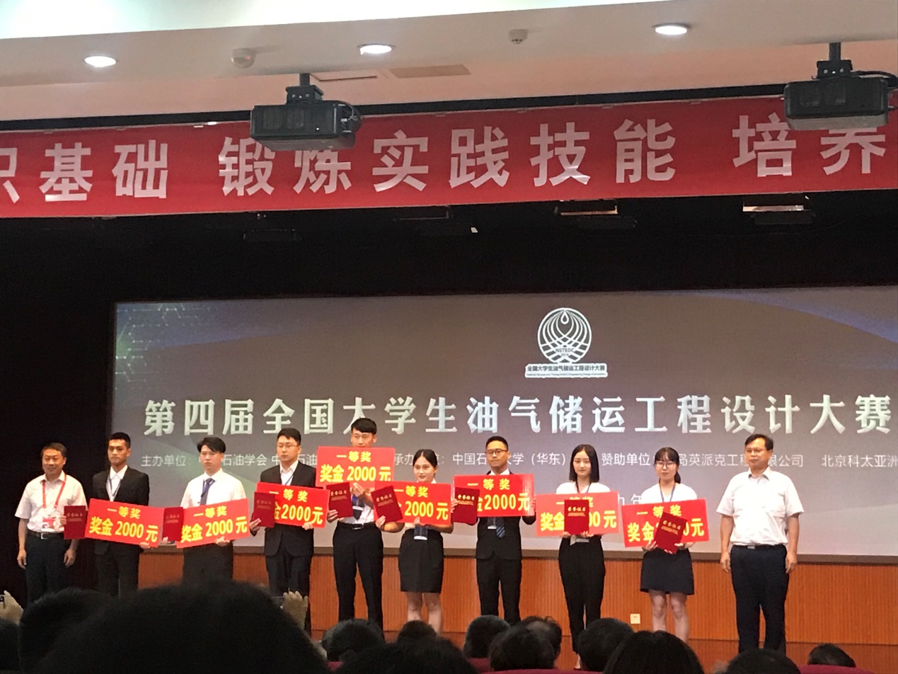 2019年6月21日-23日,由中国石油学会、中国石油教育学会主办、中国石油大学(华东)承办的“第四届全国大学生油气储运工程设计大赛”决赛在青岛举行。我校参赛队伍王睿(负责人)组获一等奖,郭伟、李莹屏组获三等奖。