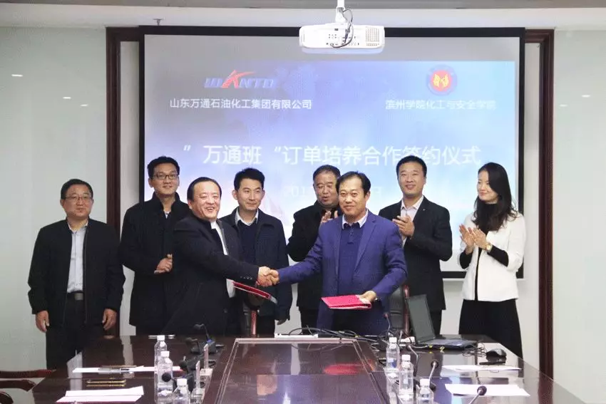 为了促进学校发展,提供同学们学习能力,11月8日,我院与山东万通石油化工集团有限公司在控股集团15楼会议室举行了“万通班”校企合作签约仪式。德赢官网党总支副书记张健、副院长商希礼、学生科长金志杰等院领导与万通海欣控股集团总工程师吕兰涛、万通石化集团总经理刘洪涛等集团领导共同出席此次签约仪式。