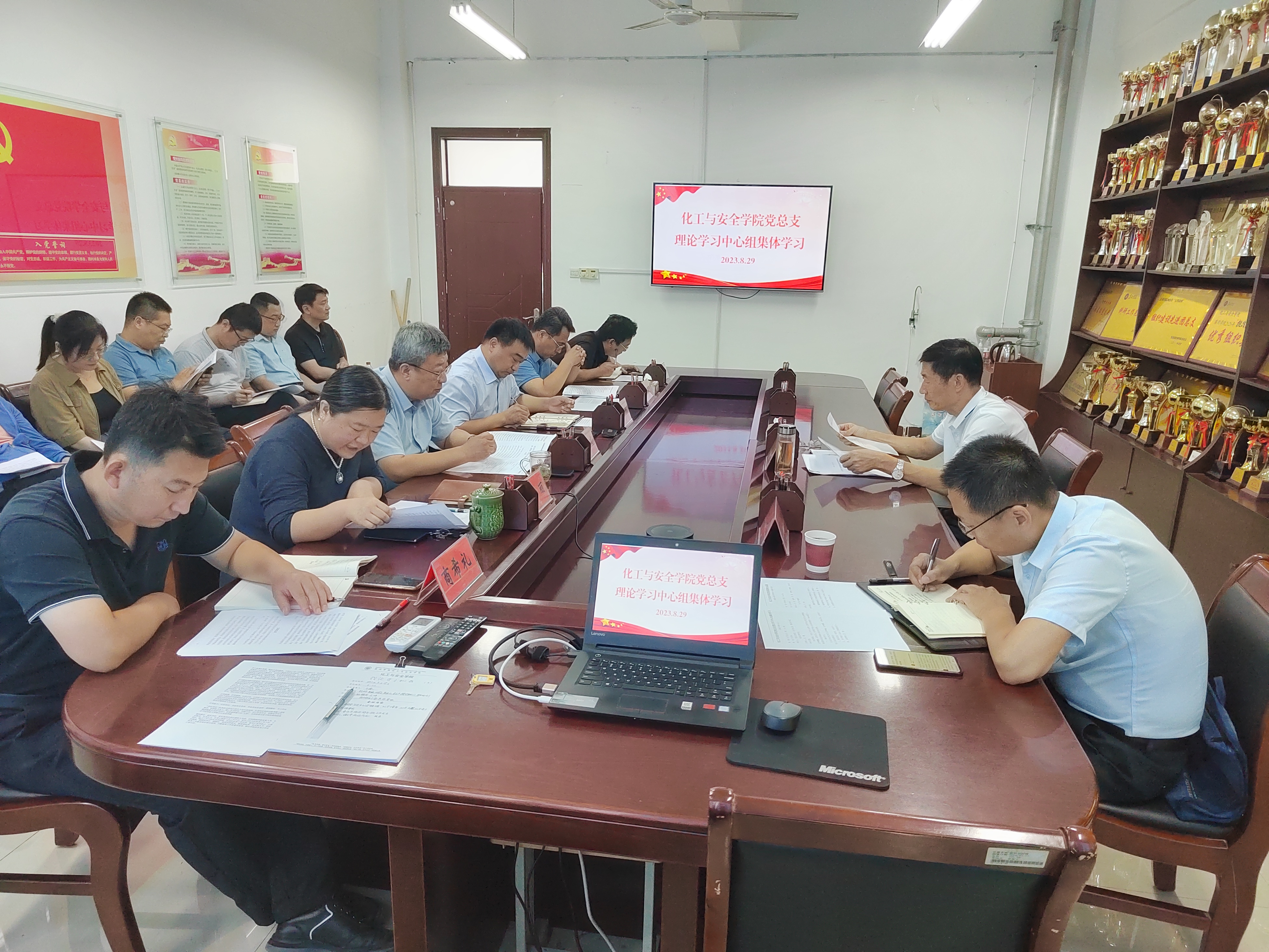 8月29日上午,化工与安全学院在8-316会议室开展党总支理论学习中心组2023年度第9次集体学习和党政联席会,学校党委委员、副校长孙银河列席旁听,学院党总支书记王建主持会议。